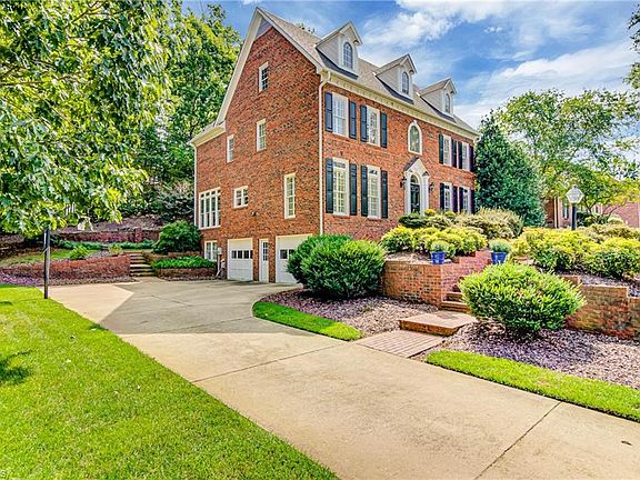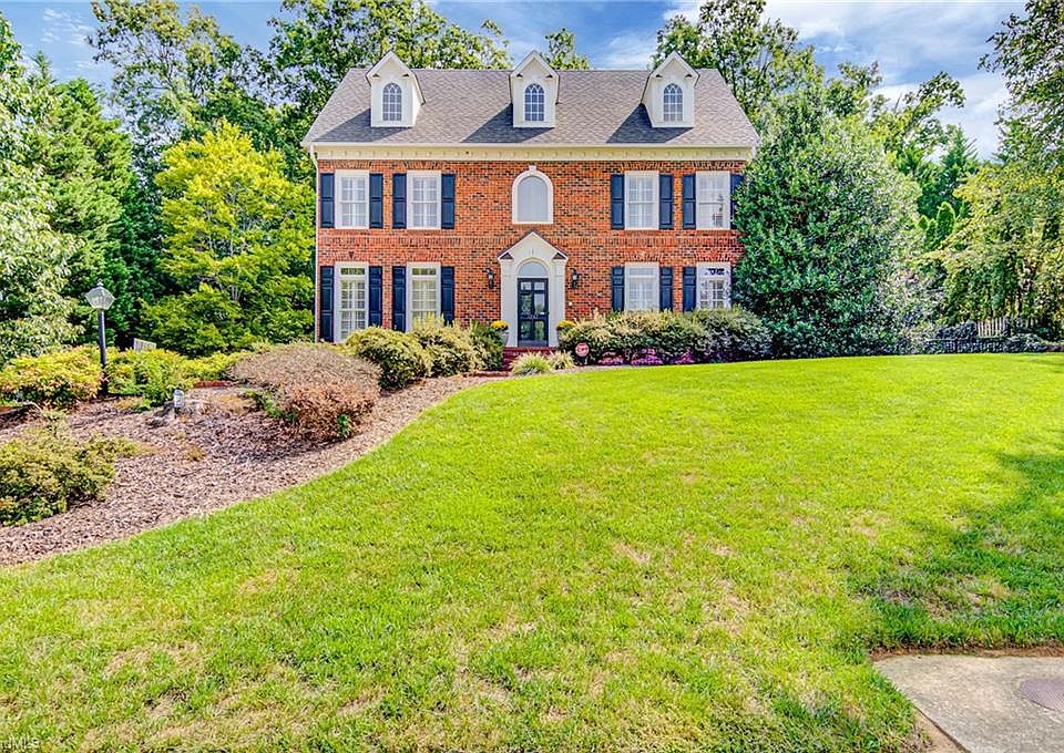 Ready for the next chapter in your story, this brick home is nestled in Woodland Hills, in the heart of NW Greensboro - close to shopping, dining, parks, A & Y/Bicentennial Greenways, major traffic arteries & PTI Airport. Refinished hardwoods throughout main level. Kitchen w/white cabinets, granite c'tops, designer backsplash, lower cabinet roll-out shelves, panty, undercabinet lights; stainless appliances: range w/gas cooktop & convection oven, DW & built-in MW. Sunny breakfast room situated between kitchen & fireside great room. Sunroom, with windows on 3 sides, overlooks slate terrace & back yard. ML office. Primary suite has tray ceiling, generous walk-in closet & en suite with jetted tub, shower, 2 sinks, decorative mirrors. 3 additional BRs, one w/private ½ bath that adjoins 2nd full bath (great set-up!). Basement bonus room has 2 closets. Oversized 2-car garage w/fantastic storage/workshop space. Updates include interior paint, tile in laundry room, carpet, & some new lighting.