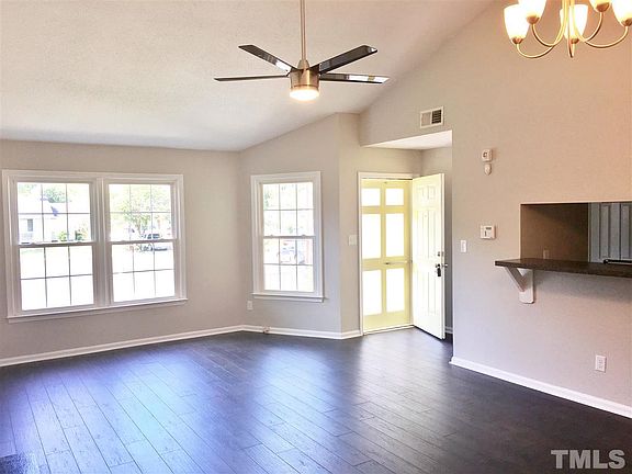 Beautifully updated ranch home with fenced in back yard! End of a cul-de-sac! Freshly painted interior + exterior. New premium laminate flooring throughout entire home. All light fixtures and hardware updated to brushed nickel. Kitchen bar overlooks open living/dining area. Two full bathrooms boast tile showers with tubs and new tile floors. Newly stained back deck. Short drive or bus ride to Downtown Raleigh & Wake Med Raleigh. Close to new cinema-bistro being built at Longview Shopping Center!