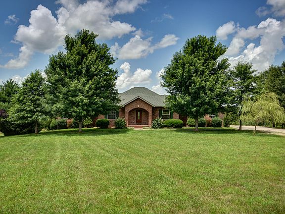 Privacy and views for miles! This beautifully maintained home in Rogersville schools. Home is set on one of the highest points in Greene County. Secluded but just minutes from Springfield, 5 bed 3 bath home has gleaming hardwoods, new granite countertops, New stainless appliances and more. Huge picture windows look out on the entire valley. Great floorplan-master and 2 bedrooms on the main, enormous family room, 2 full bedrooms, bonus room, full bath and full wet bar (2nd kitchen area) on the lower level. Lower level could easily be used for mother in law quarters. High ceilings throughout with lots of natural light. Tornado shelter/safe room. Substantial storage. Level yard with large area to add shop building, barn or more. Two pastures. No zoning restriction, all livestock allowed.