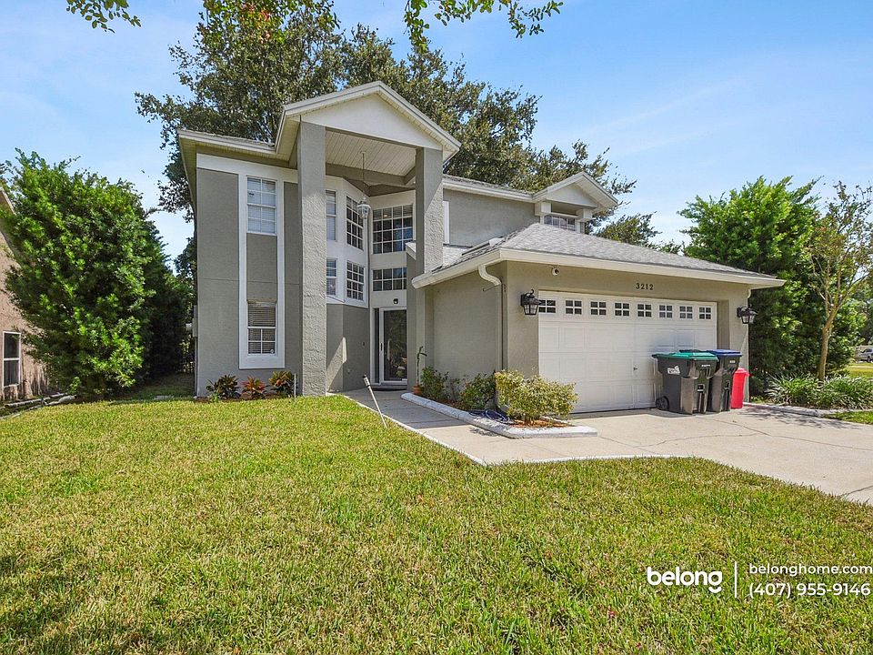 Welcome to this vibrant 3-bedroom, 2.5-bath home at 3212 Lake George Cove Drive, Orlando, where comfort meets convenience in one gorgeous package! Enjoy a gorgeous lakefront view, a 2-story deck overlooking the lake, and a brick pad out back where you can put a firepit or a picnic table. Step into the light-filled living area with soaring ceilings, large windows, and warm wood-look floors. A decorative fireplace adds charm, and a versatile lofted space opens up endless possibilities. The kitchen offers long countertops, stainless-steel appliances, and plenty of cabinet space, ideal for both daily cooking and hosting friends. Bedrooms provide peaceful retreats, including a primary suite with its own bath, and a washer and dryer are included for easy living. Outdoors, you'll love sipping your morning coffee on the second-story balcony deck under an oak canopy overlooking Lake George - a setting that feels both private and serene. Landscaping stays lush with automatic B-hyve sprinklers, and the fenced backyard pairs beautifully with an enormous front yard, giving families or those wanting extra space plenty to enjoy. A two-car garage completes the package. This family-friendly neighborhood combines lakefront views with central Orlando convenience. Just minutes from MCO, downtown, and the Mills/50 district, you'll have groceries, dining, and entertainment close at hand. This is Central Florida living at its best! *Fireplace is for decorative use only and cannot be used without consent from Belong. *Our homes come as-is with all essentials in working order. Want upgrades? Request it through the Belong app, and our trusted pros will take care of the rest!