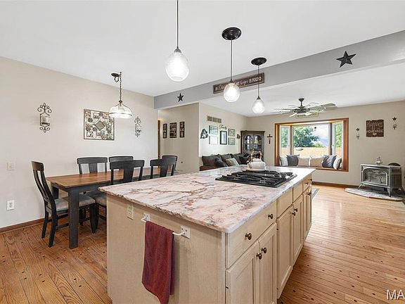 This spacious 4-bed, 3-bath ranch has incredible entertaining space! You’ll love the open concept large kitchen with plenty of room to gather. This kitchen has ample cabinet space, a big island and a large pantry. Off the kitchen is the stunning custom covered deck that is screened in for 3 season enjoyment. You will also enjoy a slightly oversized yard with a full fence. Primary bedroom has a fully updated bathroom. The lower level is equipped with a bar, fireplace and rec area to make your own! With the finished lower level offering even more living space a bonus bedroom and bath can be found down here. And for the dog lover this home comes with a dog run into the house. Lastly the oversized garage completes the package, perfect for storage, wood working, or that car enthusiast! HVAC new fall of 2024, new roof summer of 2020. Minutes from parks, St. Charles Main Street and bike trails schedule your showing before it is gone. Open house Sat 10 from 12-3, come on by and take a look.