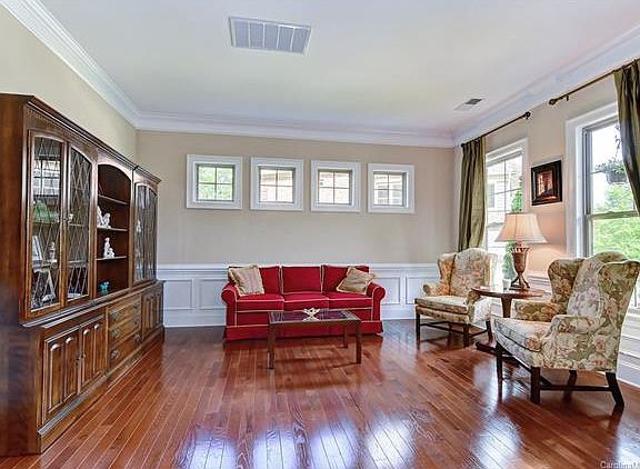 Stone accent brick beauty! Stunning 2-story DR, gorgeous hdwds, great room with stone frpl, tiled BAs w/granite and gourmet kitchen w/ granite, SS appliances and island. Flexible floor plan has main level guest BR & BA and bonus/media or 5th BR. Large master w/ corner garden tub & custom tiled shower. Enjoy the landscaped private yard from the cozy deck or paver patio! Great location across from neighborhood green space. Living Room curtains do not convey.