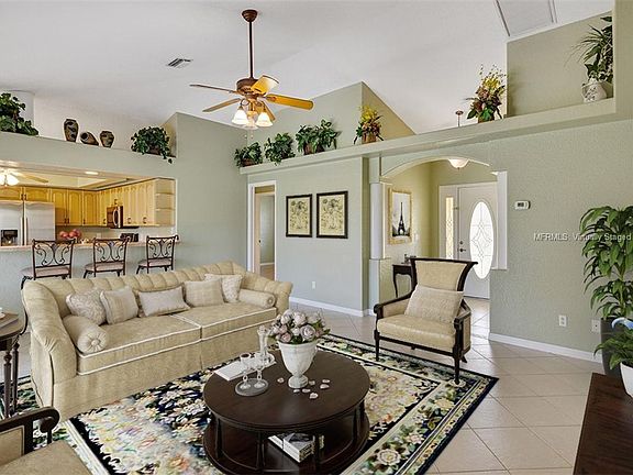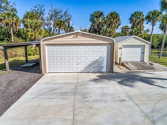 One or more photo(s) has been virtually staged. Plenty of room for those extra toys and cars! Enjoy the very open floor plan with tile throughout the living areas and interior laundry room. The master bedroom and 2nd bedroom have new carpet installed. Updated stainless steel refrigerator, microwave hood and stove compliment the kitchen with a large pantry and center island with extra storage. Master bathroom features a walk in shower, separate toilet area, jetted tub and double entry closet that leads to the laundry room. The screened in back lanai connects to the extra 16x13 concrete pad for your patio furniture and grill. Custom built swing set in the fenced back yard is a fun addition :) Shed (11x20) includes a built-in work bench and is pre-wired for electric. The 2 car enclosed metal garage (20x30) allows plenty of room for outdoor storage and includes a lean-to for an additional parking/storage space. Gulf Cove is a waterfront community with a voluntary Homeowners Association ($60/year) which give you the benefits of the waterfront park, pavilions and playground. HOA members can pay an additional fee of $60/year to take advantage of the community boat ramp.