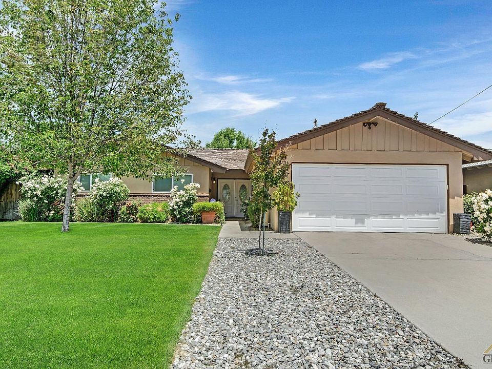 Welcome to this lovely home located in the heart of Downtown Bakersfield, a charming 3-Bed, 1.75-Bath home offering numerous upgrades throughout including a newer water heater, newer roof, dual pane windows & much more! Step inside to find the cozy living room adorned with a stunning double-sided brick white fireplace & wood-like flooring you will find throughout. Down the hall, you'll discover two delightful guest bedroom adjacent to the guest bathroom. The kitchen boasts granite countertops, white cabinetry, a double oven, and elegant tile flooring. The master suite offers a luxurious bathroom with a spacious walk-in shower and a vanity area. . Outside, lush landscaping and a large covered patio create an inviting retreat. A shed with wood-like flooring and A/C provides versatile space. Don't miss this opportunity to embrace Downtown living at its finest.