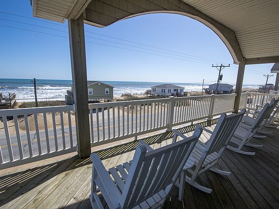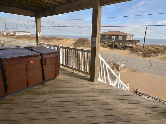 #74 'Sundance' Available 12/1/16 through 3/31/17. $1,500 plus utilities. No Smoking. 5 bedrooms, 3 1/2 baths. Semi-oceanfront in Kill Devil Hills. Milepost 5.4. This fabulous Semi-Oceanfront escape is a rare beauty! Spacious and beautifully decorated, this home is almost across the street from the beach access. Extra large windows on the front and the sides enable you to enjoy a panoramic view of the ocean from anywhere in the great room. Relax with a favorite book, soak in the hot tub (on a deck facing the ocean), enjoy walks on the beach or kick back to take in the refreshing ocean breezes and those amazing views. Enjoy the books, movies and games the cottage offers. Convenient to golf, shopping, great dining (within walking distance) and sight-seeing. WiFi available. Other amenities include 3 decks with furniture, whirlpool in master bath, private screened porch/master bedroom, picnic table, baby gate, dining room seating for 10, all bedrooms with TVs, 36" TV in great room, TV/rec room on ground level with wet bar and mini-fridge. Ground Level: Recreation Room w/TV/DVD, Mini-Fridge, Half Bath, separate Washer/Dryer area. Mid Level: Queen Bedroom w/Ocean Views, TV and adjoining Bath, Bedroom w/2 Twins and TV, 2 Twin Bedroom w/TV and Adjoining Bath to Queen Bedroom w/TV and Ocean Views, Hot Tub is on this Level w/Ocean Views. Upper Level: Open Area w/Gas Fireplace, TV/VCR/DVD and CD Player, All of Great Room has Ocean Views, Dining Area w/Table and 10 Chairs, 4 Bar Stools, King Master w/TV and Jacuzzi Tub and Private Screened Porch. Charcoal Grill and Picnic Table. #74 'Sundance' Available 12/1/16 through 3/31/17. $1,500 plus utilities. No Smoking. 5 bedrooms, 3 1/2 baths. Semi-oceanfront in Kill Devil Hills.