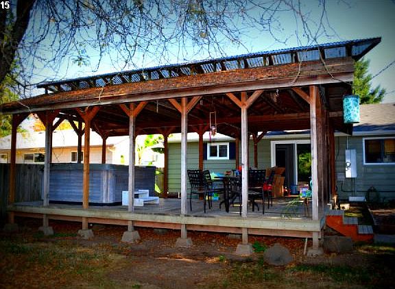 Low county property taxes while attending Eugene Schools! Features updated modern lighting, laminate floors and a diner booth! Huge custom covered deck, Detached Studio, 219 sq/ft could also be used for storage behind home is fully insulated w/ skylights, heat, and 220 power. Newer roof, water heater, vinyl windows. Indoor laundry. All appliances included. Well maintained, Move in ready!! This is a must see!