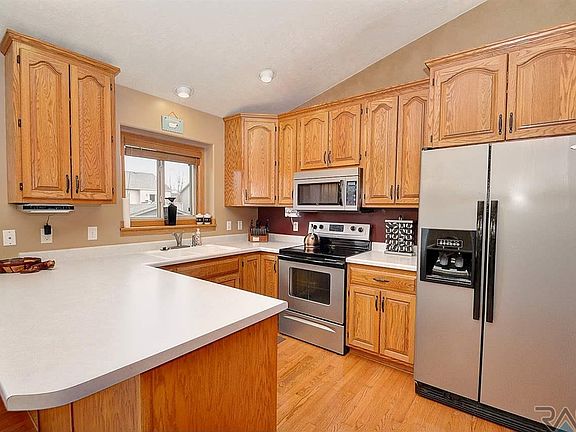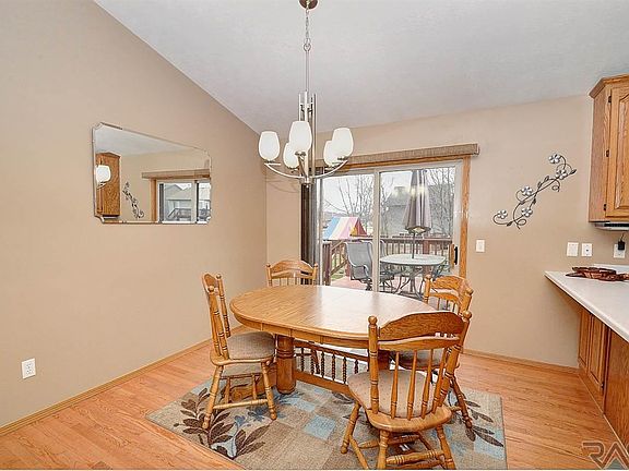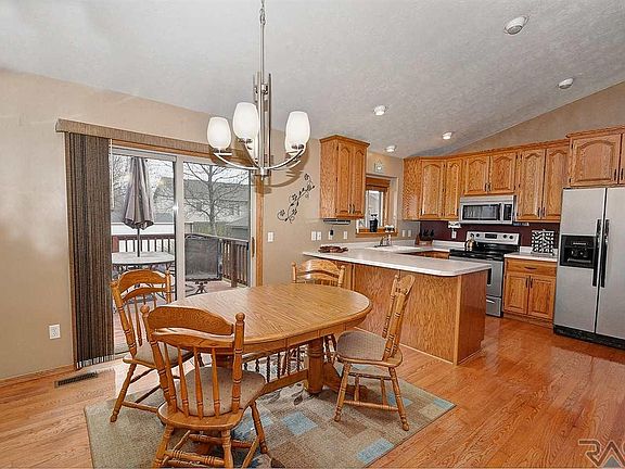 Impressive 3 bed, 2 bath home in an established Southeast Sioux Falls neighborhood. Generous, open entryway leads your eye to the vaulted ceilings in the main level living space. Living room offers a bay window which streams tons of natural light. New carpet and tasteful, warm color pallets cover the main level. Eat in Kitchen, set on beautiful hardwood flooring, offers stainless steel appliances, generous cabinet space, breakfast bar for additional seating and convenient slider to deck. Two bedrooms, both with walk in closets complete the main level. Large entry offers a storage closet plus generous landing space and convenient garage access. Lower garden level offers a huge family room with gas fireplace to keep you cozy during the cool, winter nights plus third bedroom, ¾ bath and large laundry room. Enjoy the heated triple stall garage with epoxy flooring. Mature trees and beautiful landscaping surround the home.
