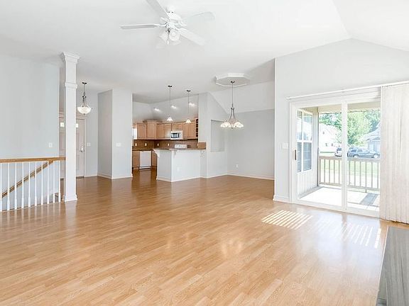 One level living ranch home with all new paint and carpeting throughout. Well maintained, maintenance free exterior, open concept with all neutral colors. Nice corner lot, great curb appeal. Great countertop and cabinet space for the chef in the family. Vaulted ceilings in the great room with beautiful fireplace. Walk out to covered deck overlooking great lot. Neighborhood pool, great highway and shopping access.