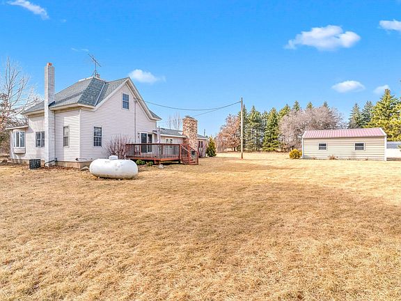 This home is full of character and charm, set on 2.5 acres of open space for you to enjoy. The large wraparound front porch is perfect for relaxing, while the back deck offers a great spot to take in the peaceful surroundings. Inside, the bright and open layout makes the home feel inviting, with a main floor primary bedroom featuring a massive walk-in closet with built-in organizers. The main floor laundry adds convenience, and upstairs you'll find a spacious family room and third bedroom. Need storage? The heated and insulated detached garage, pole barn, and shed provide plenty of space for all your tools, toys, and hobbies. If you're looking for a home with character, room to spread out, and endless possibilities to make it your own, this is the perfect place for you!