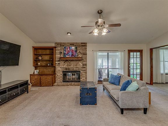 Situated in the heart of walkable West Norman, you can relax at home or walk to nearby amenities in this beautiful home! A stone's throw from Brookhaven Square and Robinson Crossing restaurants and shops, this home greets you with an inviting living room with a high ceiling, built in shelving, fireplace, wet bar, and tons of natural light from windows overlooking the heated and cooled sunroom space, and backyard. Between the dining area, living room, sun room, and spacious backyard, you've got room galore to entertain friends inside and outside! Plenty of kitchen countertop space and storage so meal prep is that much easier, and a bay window over the kitchen sink for cleanup with an outside view. The floorplan is split, with the secondary bedrooms sharing a full bath in the hallway, having plenty of room to make staying in them cozy, and each with a spacious closet with shelving. Relax in the large primary bedroom with a tray ceiling, large window overlooking the front yard, and two walk in closets with built in shelving. The primary bathroom offers plenty of space to get ready with double sinks, under cabinet storage, and a separate toilet and walk-in shower area. Room to breathe and enjoy the large backyard, an in-ground storm shelter, hallway closet spaces that make organizing easy, home warranty coverage through First American, and MORE! Schedule a time to see this home in person before it's gone!