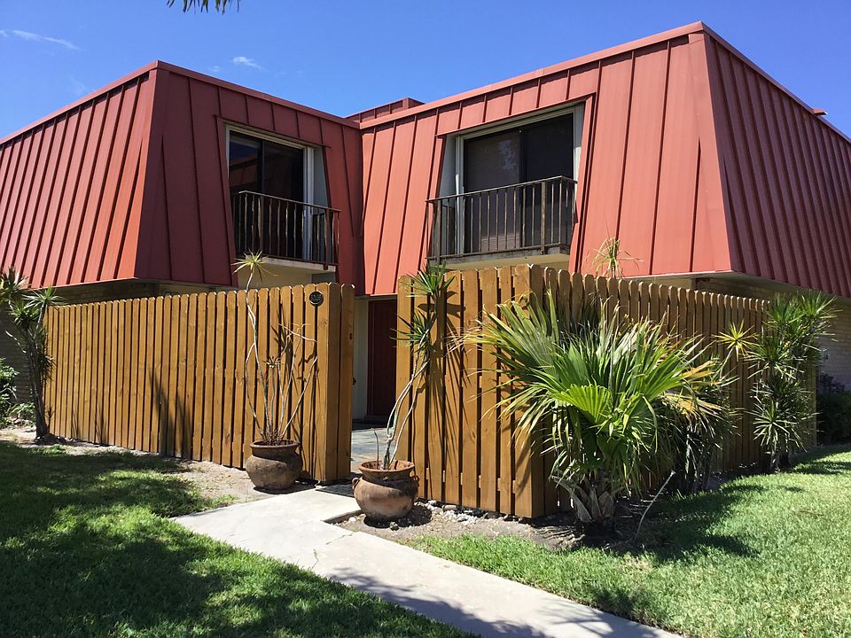 Beautiful town home with upgraded kitchen, wood laminate flooring, ceramic tile, remodeled baths. Super clean & well maintained. Open patio with slate flooring & new wood privacy fence. 2 reserved parking spaces. Large living room with gas log insert fireplace. Dining room just off kitchen. Washer & dryer on first floor & full bath. Ceiling fans in all rooms. Plenty of closet space with built-ins. 2 spacious bedrooms on 2nd floor with laminate flooring. Great Palm Beach Gardens location. Close to schools, shopping, beaches & restaurants. First, last and security required for move-in. Available 6/1/21.