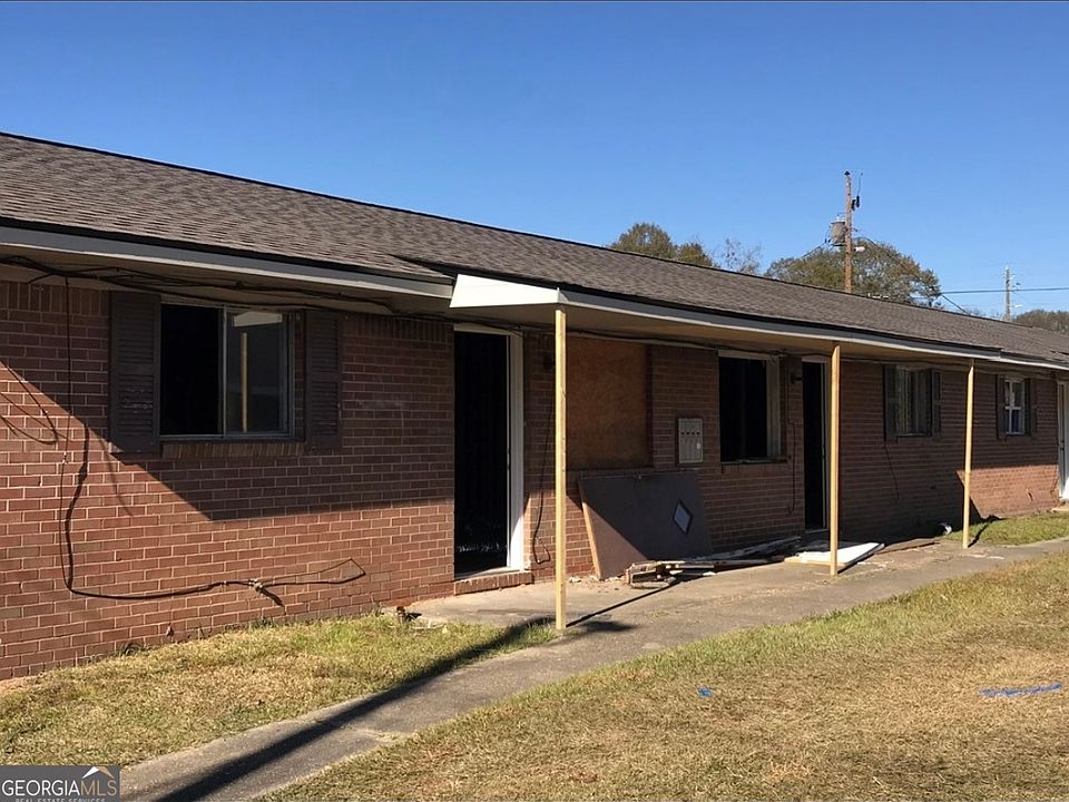 Multi-family quadplex is prepped for renovation. All brick, one story building has newer architectural shingle roof. Under roof, the building has been taken down to the studs to prepare for complete renovation; some pex plumbing is present. Contractor should estimate for sheetrock, electrical, plumbing, cabinets, appliances, bathroom fixtures, lighting, heating & cooling, insulation, windows & doors. Completed, the quadplex should be valued well above $200,000 based on available comps.