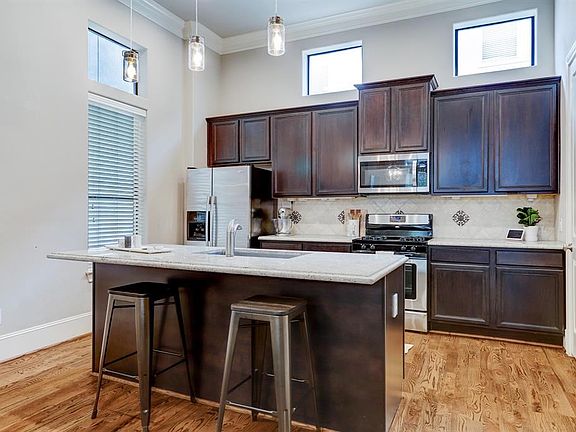 Fabulous Timbergrove/Lazy Brook home in well manicured gated community. 3 BD & 3.5 Bath, features high ceilings, natural light & second floor open concept spacious living room, dining room, & gourmet island kitchen w/hardwood oak flooring & marble throughout w/gas fireplace & covered balcony. Stainless Steel Whirlpool appliances in kitchen w/walk in pantry, five burner gas range, & gathering counter island. Lovely secondary bedroom w/french doors & ensuite bath -1st floor; perfect for bedroom, office or exercise room. Spacious primary bedroom -3rd floor; luxurious marble floored bath retreat with walk-in closet, separate large tub & shower, separate commode rm, dual sinks and vanities. Secondary bedroom with ensuite bath-3rd floor. Community boasts green space, multiple courtyards, dog runs & proximity to many great restaurants for foodies, Memorial Park & golf course & Heights. Refrigerator and washer/dryer are included. A Must See! 2021-09-12