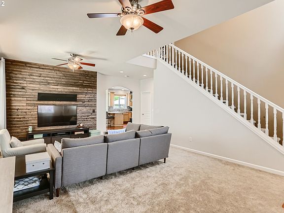Fantastic home with large bedrooms, pleasant neighborhood with lovely field views. Four bedrooms/ 2.5 bathrooms with several updates. Kitchen appliances and downstairs carpet 2017, toilets and ext paint 2018, backsplash and quartz countertop and workshop 2020, New sod 2021. Main floor provides large living space with with beautiful wood accent wall, cozy family room with fireplace and efficient kitchen. Yard is complete with dog run.