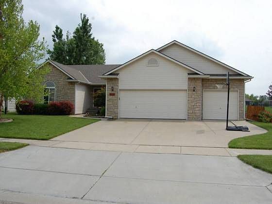 Unbeatable Lake & Treed View! Sharp ranch just a short walk to area Pool! Awesome Island Kitchen with new solid surface counters & Stainless Steel Appl! Neat formal dining! Great room w/frplc! Super fin v/o bsmnt w/FR, RR, 2 beds & bath! Deck + Patio! Fabulous landscaping! Maize Schools $267,900