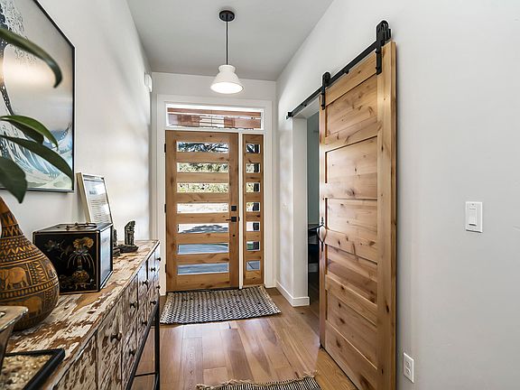 Beautiful new custom home with modern farmhouse interior styling on a spacious easterly view lot in River's Edge Village golf community on Awbrey Butte. Excellent floor plan designed for entertaining and full of features you will love including a well appointed kitchen, great room with soaring ceilings and expansive four panel glass door open to the covered deck, luxurious primary suite on the main level with freestanding soaking tub and expansive walk-in closet. Lower level features a spacious bonus/game room with large wet bar that opens to another covered deck, 3 spacious bedrooms, wine closet and additional storage. Complemented by a spacious 3-car tandem garage. Quality finishes including solid quartz counters and custom cabinetry with soft close throughout, solid wood doors, tankless water heater, high efficiency gas furnace & Central AC. Steps to Sawyer Uplands Park with access to the Deschutes River Trail to take you to the heart of downtown. This is truly Bend living!
