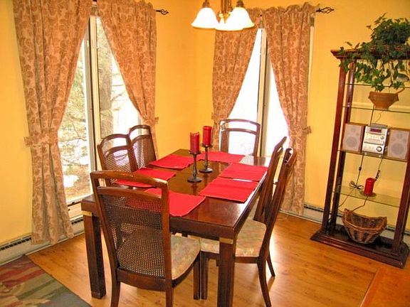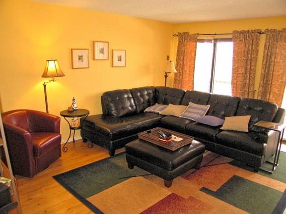 Attractively updated unit with three bedrooms and three baths all on one level. Updated flooring throughout is complimented by elegant furnishings. Ground level access off the deck to sunny grassy area. End unit with extra windows and light. Short walk to Spa-Aquatics-Fitness Center, Devils Knob Tennis & Golf, Devils Grill Restaurant. Drive or catch the shuttle for a two minute ride to skiing and shopping..