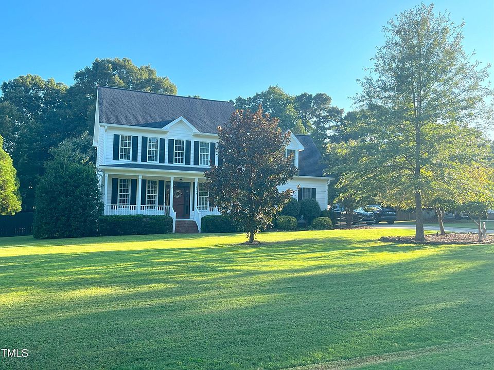 The Raleigh home you have been waiting for! This beautifully updated 3 bedroom (plus bonus room)/ 2.5 bathroom single family home sits on almost 3/4 of an acre nestled in a highly desirable neighborhood. The main level showcases a stunning foyer with a decorative front door that opens to the dining room, a kitchen with granite countertops and a gas range, breakfast nook overlooking the backyard, a family room with a gas fireplace and built-in bookshelf, a half bath, and a very convenient laundry room. Upstairs, you'll find two guest bedrooms, an oversized primary suite featuring a walk-in closet, two newly remodeled full baths with a large, tiled shower in the primary suite, additional attic space for storage, and a versatile bonus room full of natural light. Currently this bonus area serves as a guest bedroom with an adjoining office! This elegant interior is complete with fresh paint, crown molding and wood flooring (main level) throughout. The oversized attached two-car garage provides plenty of room for your vehicles and additional space for tools and equipment. Recent exterior upgrades include: decorative steel garage door, shingle roof, exterior paint, and front door. Additionally, this home offers a variety of outdoor living areas with a screened porch and open deck combination leading to stone patio with a large wooden pergola, perfect for entertaining! The well-manicured backyard, fenced in for your pets, includes a koi pond, vegetable garden, and an attractive storage shed. This property is located in a beautiful, unique and highly desirable neighborhood with 3 ponds and a community pool. Perfect neighborhood for walking, running, fishing or biking. Very convenient location for grocery stores and shopping including the new Costco on Ten Ten and 401. Offers accessibility to the charming towns of Raleigh, Apex, Holly Springs, Fuquay Varina, and Cary. Business Parks are just minutes away. The nearby, newly completed 540 expansion makes for a convenient commute to Research Triangle Park (RTP) as well as the rest of the Triangle. Great schools and no city taxes. This home has been very well taken care of and is in move-in condition! Don't miss this incredible opportunity!