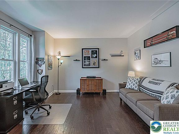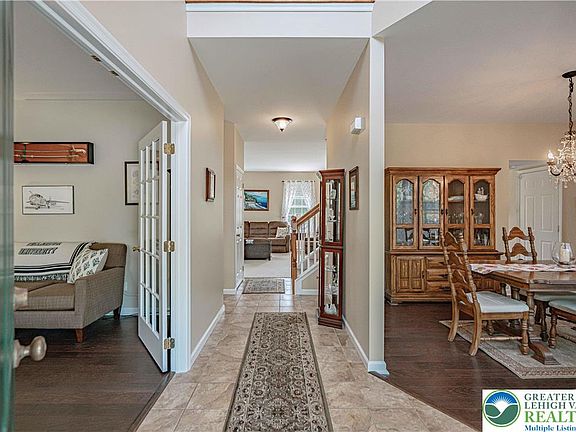 Outstanding stone front colonial beautifully maintained in East Penn schools with 4 bedrooms, 2.5 baths, freshly painted interior and exterior trim in 2023, tile 2 story foyer with French doors to office on left and formal dining room on right, both with new hardwood flooring, updated kitchen features maple cabinets, stainless appliances, granite counters, tile backsplash and recessed lighting with breakfast area overlooking private rear yard, new Anderson door to paver patio, family room accented by stone gas fireplace flooded with natural light from multiple windows, 1st floor powder room completes this level, spacious primary bedroom with double door entry, sitting area and two walk in closets, primary bath features dual sinks, walk in shower, corner soaking tub and separate toilet room, 3 generous bedrooms, full hall bath and laundry room, full basement affords plenty of storage and with it's outside exit and daylight windows is ready to finish, also plumbed for a full bath, walking path at end of Olympic Drive leads to township park that features pavilions, disc golf, basketball courts, fishing, restrooms, play and lawn areas, pump park plus barn for party rentals available through township.