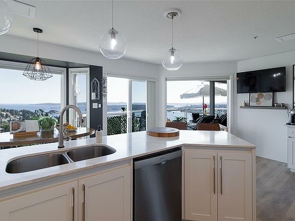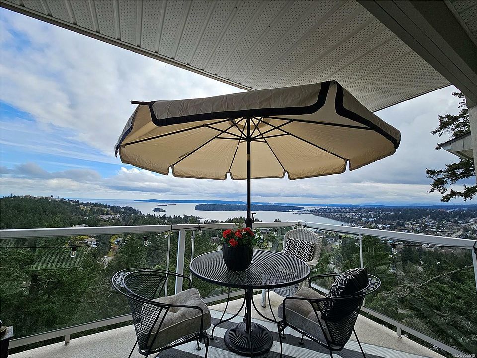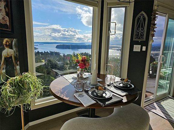 Welcome to the pinnacle of Departure Bay, boasting breathtaking panoramic views of the ocean, city, and Islands. Rare opportunity to live in prestigious Edgewood Estates and own a newly renovated home in a prime location with uninterrupted views from every angle. Enter through the cathedral foyer, with contemporary flooring throughout. The main floor great for hosting and embracing modern comforts, complemented by expansive windows that showcase the mesmerizing scenery. Ascend the staircase to the serene primary suite, accompanied by the ocean view study. Indulge in the spa-like ensuite or unwind by the fireplace, soaking in the city lights and BC Ferries. Enjoy multiple secluded patios & balconies, including a hot tub patio, granting access to the lower level featuring a guest suite & ample storage space. This unit presents a rare opportunity to reside in a sought-after, established community, a fully renovated abode, primed for your relaxation and contentment.