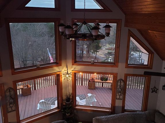Beautiful A-frame Alpine style home on 3 acres with a view of surrounding towns including Charlotte from the front deck. Twenty-two foot high cathedral ceilings with large front windows over looking Gaston and Mecklenburg counties. Open and spacious main floor plan with kitchen, dining and great room rolled into one. Second level of home has bonus room with new ceramic tile shower and flooring. All sheds and outbuildings on the parcel are included. The driveway is a shared with (2) neighbors. New architectural metal roof installed in 2021.