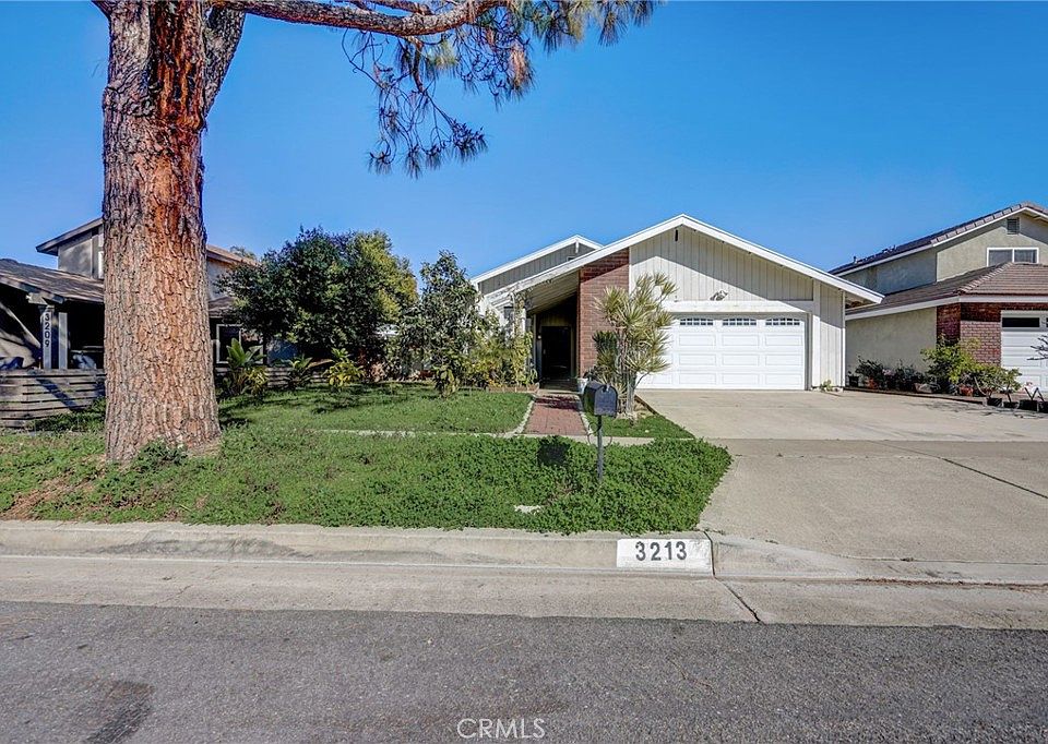 Welcome to your new single level four bedroom home at 3213 S Douglas St in the desirable track in Santa Ana! As you arrive, a long extended driveway with a two car garage allows ample space to park. The lush grassy front yard welcomes you. Step under the covered front patio and through the front door to discover a spacious living area, complete with a cozy fireplace, perfect for relaxing.