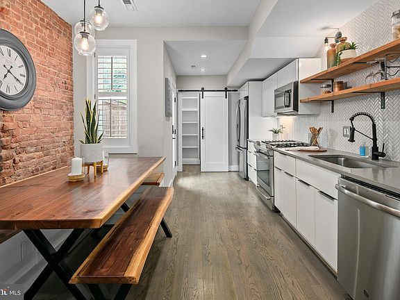 Offer accepted- open house canceled! Discover this move-in condition, beautifully renovated and impeccably maintained brick row home in the heart of vibrant Columbia Heights. A perfect condo alternative—without the fees—this 2 BR, 1.5 BA home with parking and private outdoor space offers a seamless blend of historic charm and modern updates. So much to love! Step inside to a welcoming open layout featuring original exposed brick, refinished hardwood floors, and a stylish powder room on the main level. The sleek eat-in kitchen boasts stainless steel GE appliances, striking herringbone tile backsplash, and direct access to the private rear yard—complete with a natural gas line for grilling. A full-sized GE washer and dryer are conveniently tucked into a spacious kitchen pantry. Upstairs, two well-appointed bedrooms feature custom-built Econize closets and share a luxurious, spa-like bathroom with floor-to-ceiling tile and a large walk-in shower. Outdoor spaces include a charming front porch overlooking lush landscaping, a fenced rear patio with grassy yard and a stunning autumn blaze maple tree, plus a secure parking pad with a roll-up garage door and handy tool shed. Recent updates include a new roof (2019) and attic insulation (2023), new wood fence (2019) ensuring energy efficiency and peace of mind. Just moments from Metro, parks, shopping, and all the dining and cultural amenities Columbia Heights and nearby U Street have to offer. Custom live wood dining table and bench and gas grill convey.