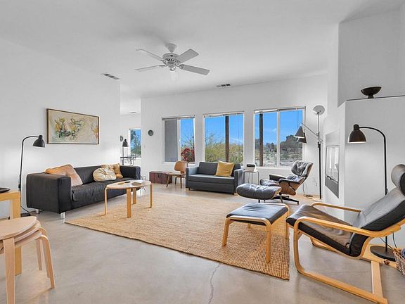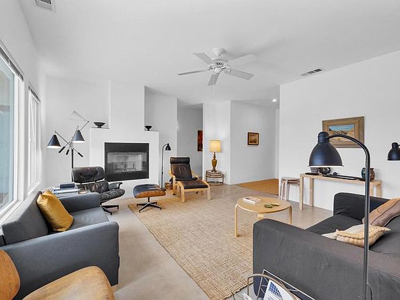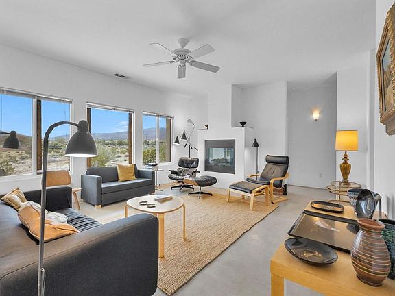 Los Angeles Art Dealer Thomas Jancar's 2004 custom home is on sale Borrego Springs, CA. The home features are contemporary with smooth white walls throughout, 9' ceilings, natural birch doors and a polished concrete slab flooring in all spaces. Jancar had the house built in 2004 to his design and specifications. The meticulously cared for 3 bedroom home is located in a tranquil neighborhood of Borrego Springs, which is known for it natural beauty and growing art community. The 3 bedroom, 2 bath plan is light and airy. Poured and polished concrete covers the floors while the many double paned windows create a calm neutral environment of light that reflects the expansive Anza Borrego Desert. The "Star Gazing" deck allows for vast views of the mountain vistas by day and the fabulous night sky by night. The home is on .96 acre lot and includes the vacant lot of .67 acre on the West side of the house for added privacy totaling 1.63 acres of land.