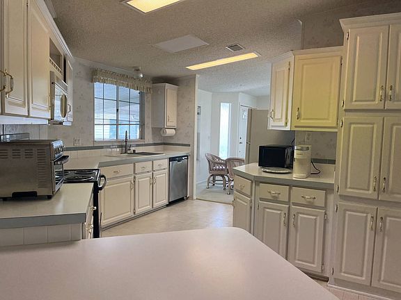 3213 WOODY CT RIDGEWOOD ESTATES ELLENTON, FLORIDA 34222 Located in one of central Florida's most desirable 55+ active gated community of Ridgewood Estates! This 1994 2B/2 BA has 1800sq feet of living space on a large lot with an additional oversized lanai 16' x 18' that has glass sliding windows and is air conditioned for year round pleasure. This home is located on a private cul de sac with magnificent pond views to watch the wild life of Florida. The 4 ton AC is a 2017 & has had regular maintenance/ checked yearly. The roof is 2020 and in 2021 the tie downs were inspected, the vapor barrier was replaced and the air ducts were re-strapped as well as new insulation.!! Piece of mind with this well maintained home!! The spacious living room is bright with large windows with curved windows above allowing maximum sun to enjoy the pond view across the street. The living room and dining room have vaulted ceilings and carpet that continues through the hall and bedrooms. The large dining room has multiple built-ins to display your favorite treasures and a custom light fixture over the large dining table. The large kitchen has abundant cabinets and counter space, with a large pantry and eat in peninsula. The large master bedroom has connecting walk in closets and ample room to accommodate a king size bed. The spa like ensuite has a soaking tub, built-in storage cabinets, double sink vanity and a walk in shower. The guest bedroom has a large closet and carpet. The main/guest bath has a single sink vanity and tub shower combination as well as additional storage. Talk about storage...the separate laundry room has an abundance of storage and a built in desk for your home office. The utility/shed is 16' x 12' and is equipped with a work bench, storage shelves, utility sink, a door to the back patio and is even climate controlled for year round projects.!! The lot rent is $ 1210.88 thru 9/30/26 !!! Pond views without the on the pond price!! A 4pt inspection was completed on 12/31/24 since then the pipes/ plumbing has been upgraded to new code. Ridgewood Estates is a well-maintained GATED community with 2 heated pools, a hot tub, shuffleboard and tennis courts, a horseshoe pit, a poolside clubhouse with a library, a fitness center, and a billiards room. There is a large "event" center used for many HOA-sponsored events. Cards, Bingo, Chair Volleyball, water aerobics.... to name a few! Florida MH Sales, LLC cannot guarantee or warrant the accuracy of any property's information, measurements, or condition. Measurements are approximate. All homes are sold, as is and a personal or professional inspection is encouraged. Additional personal property conveys, as is with no value. Lot rent is set by the community and is subject to change. All buyers must be approved by the community before closing on a negotiated sale contract.