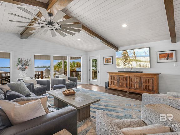 NO FLOOD INSURANCE REQUIRED! Boater’s Dream on the Bay !Welcome to your waterfront paradise! This stunning property boasts private, sandy white beaches—safe and shallow for kids to play, yet with a 5–6 ft deep draw for larger boats. Enjoy one of the best spots around for kayaking and paddle-boarding, with effortless beach launch access right from your backyard. The impressive boat house is a boater’s dream, featuring three lifts (12,000 lb, 10,000 lb, and a PWC lift), a dockside fish cleaning station, storage closet, three water hose stations, and ample lighting—all wired for TV, so you can relax or entertain dockside in style. Frequent visits from dolphins, manatees, fish, and blue crabs make every day feel like your own private nature show.Inside, the renovated home offers 3 bedrooms and 2 bathrooms upstairs, plus 2 additional rooms and a full bath downstairs—for guests or multi-generational living. The primary bedroom and second bedroom both feature sliding doors that open to a waterfront balcony, providing peaceful views and direct access to the coastal breeze. The living area also offers a beautiful view of Ole River, creating a light-filled, relaxing space you’ll never want to leave.Located on one of the highest elevations on the island, this property does not require flood insurance, offering peace of mind alongside its incredible views and amenities.Recent upgrades include a Bronze Fortified roof (post-Hurricane Sally), a new upstairs AC unit, and new mini-splits downstairs. The chef’s kitchen is equipped with KitchenAid appliances, an under-counter ice maker, and two refrigerated drawers—ideal for entertaining or everyday luxury.The fenced yard offers both privacy and security, completing this incredible blend of comfort, luxury, and coastal living.Call your favorite agent and schedule a private tour today! Buyer to verify all information during due diligence.