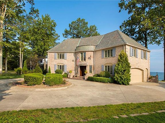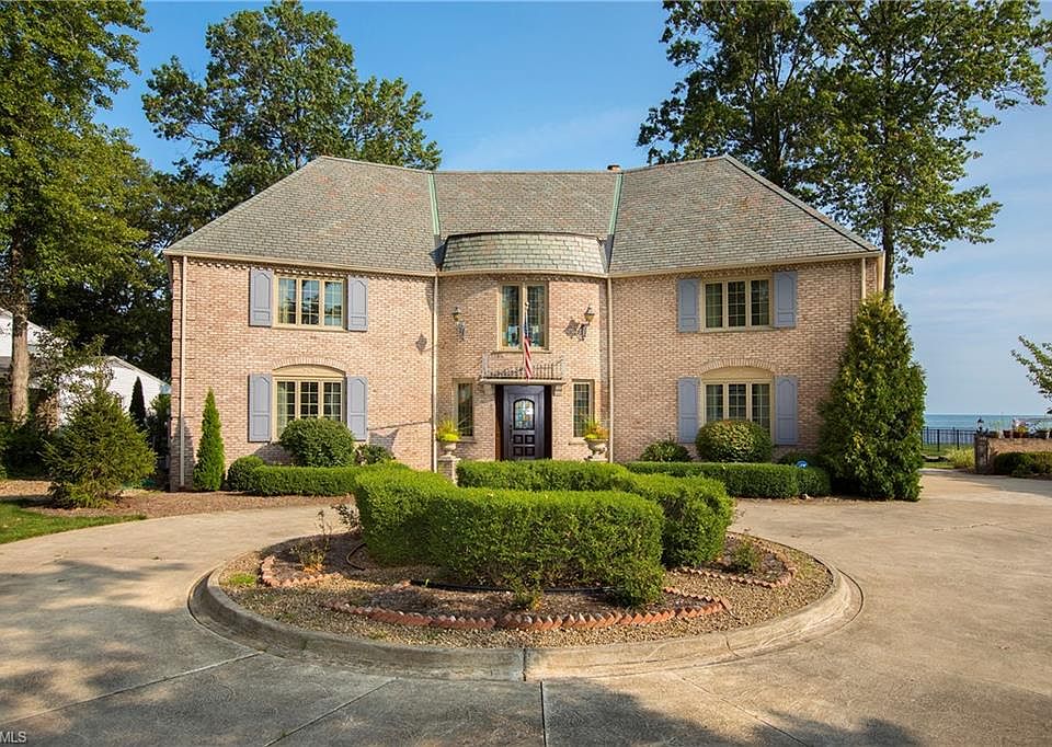 A winding drive welcomes you to this MAGNIFICENT brick Georgian colonial offering the ultimate in luxurious lakefront living! An open foyer greets you with impressive views! The family/great room with soaring ceilings & warm walnut floors is the most relaxing and comfortable spot in the home w/ stone wall fireplace and unsurpassed lake views. A gourmet kitchen w/ spacious eating area, wet bar, and huge pantry is perfect to entertain while you cook and the warm hearth room is the ideal spot to relax with coffee or a cocktail in front of the fireplace. Gracious living and dining rooms beautifully enhanced with walnut floors and rich millwork. The open, curved staircase to the second floor brings you to a fabulous remodeled office w/ French doors to a balcony overlooking the lake. East wing offers 2 spacious bdrms & 2 beautiful baths. West wing features another bedroom & the luxurious Master suite. Wake up to the sound of the lake and step out onto a private balcony; relax and pamper yourself in the gorgeous glamour bath. Huge walk up attic is a bonus area for storage or to finish. Lower level has finished rec rm, gaming rm, & lg. utility area. Then there is outdoors! Private screened porch leads to multiple stamped patios, and a private hot tub area! Stroll down to the incredible boathouse fabulous for entertaining or relaxing. The rooftop deck offers the full experience of living on Lake Erie. Enjoy your boat, jet skis and kayaks from your own dock.