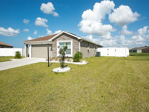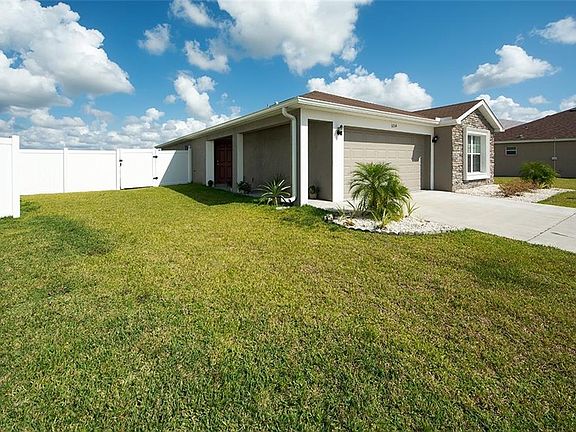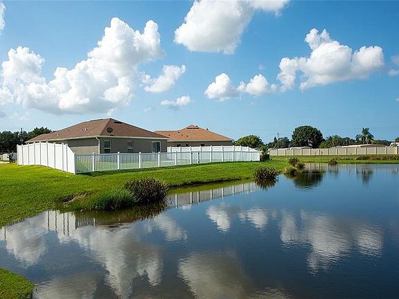MOVE IN READY 4 bed/2 bath affordable and lovely home in Amber Glen located on a cul-de-sac. No need to wait for months of construction. Clean and fresh and ready for you to move right in. This home was built in 2017 by Highland Homes. Owner needed to relocate. The open floor plan and the vaulted ceilings in the living room give this home a spacious feel. The premium lot allows you to enjoy the serene water view of the pond out back, while still having a new white vinyl fenced-in yard for the kids and/or pets. Sliding doors open onto the 15'X15' concrete slab out back that has already been poured and is ready to use as an outdoor patio, or for outdoor grilling, or to add a screened porch. This home also features a Culligan water softener system which helps to prolong the life of your plumbing. Roof, AC, appliances, everything new in 2017. HOA fees are only $75 per month. Great location, too. Close to the Prime Outlets Mall and the new Detwiler's Farm Market. You're only minutes from I-75 and I-275. Easy access to Tampa, St Pete and Orlando. Our beautiful gulf beaches are nearby as well. Whether you're a first-time homebuyer, or wanting a winter retreat, or simply need the extra space for a growing family, don't miss this opportunity to own your slice of the Florida lifestyle.