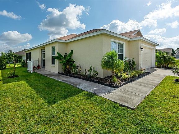 Don't miss the opportunity to own this beautiful, affordable and Move-in ready home. Built in 2017 by Highland Homes this home is located in the Amber Glen Community. This Oleander II model offers a spacious, split floor plan, open living concept with vaulted ceilings throughout the main living area. Home Features 3 bedrooms, 2 bath, 2 Car garage and a screened lanai to enjoy the gorgeous Florida sunsets. Come relax and enjoy your master suite that features walk-in closet, luxury bath with dual vanities, garden tub & tiled shower with glass enclosure. This home also offers Florida friendly landscaping with irrigation system, Low HOA, Great location, Close to the Prime Outlets Mall and the new Detwiler's Farm Market. You're only minutes from US 19, I-75 and I-275 giving you easy access to Bradenton, Sarasota, Tampa, St Pete and Orlando. Whether you are a first time homebuyer, looking for the perfect winter home or just looking for a great community to call home. This home checks all the boxes & won't disappoint.