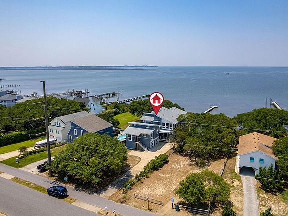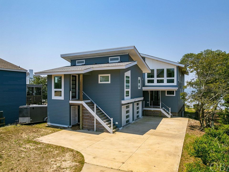 Live your best life in this fabulous sleek waterfront beach home! Rarely does a property of this caliber come available at this price point. Outstanding design, sleek lines, solid construction and amazing views combine to create a showpiece property. Modern architecture complements quality finishes beautifully and is enhanced by an abundance of windows , water views, and natural light. Constructed by Olin Finch, the design of the home is perfect as a residence, 2nd home or a slick vacation rental. The living area is on the main level and all 5 bedrooms are on the top level, including the separate in-law suite above the garage and includes a private entry and separate kitchenette and living room. The two car garage is perfect to store all of the terrestrial and aquatic toys. The home and septic system is designed to accommodate the addition of a pool.