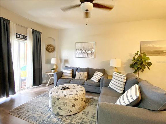 Stunning updated 4 bedroom, 3 bathroom, 'fully furnished' town home, with separate lockout unit, Wood plank Style flooring throughout, Stainless Steel Appliances and updated a/c Unit. located in the very much sought after Community of 'Regal Palms Resort', backing onto Conservation and with the added advantage of being just across the way from the very popular 'Highlands Reserve Golf Course' facility. The Resort has 2 swimming pools, a lazy river, poolside bar, water-slide, beach volleyball court, an indoor and outdoor spa, steam room, sauna, fitness center, sports bar, restaurant, play areas. Regal Palms is located just minutes from Disney and all of the local attractions and within easy walking distance to a nearby Publix Supermarket shopping complex and restaurants. The property is being sold 'fully furnished with high quality furniture'. In addition to basic common area maintenance HOA Fees also includes Cable, Phone, Internet, Exterior/Interior Pest Control and Lawn Maintenance.