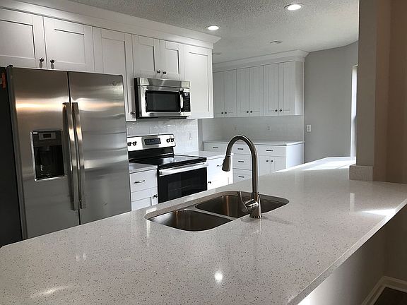 Completely remodeled! New air conditioner, water heater, kitchen appliances, paint inside and out, new flooring, newly tiled bathrooms with new vanities. Home has a screened lanai. New kitchen cabinetry and quartz counter tops. Hurry. Home will not last! Home is available immediately.