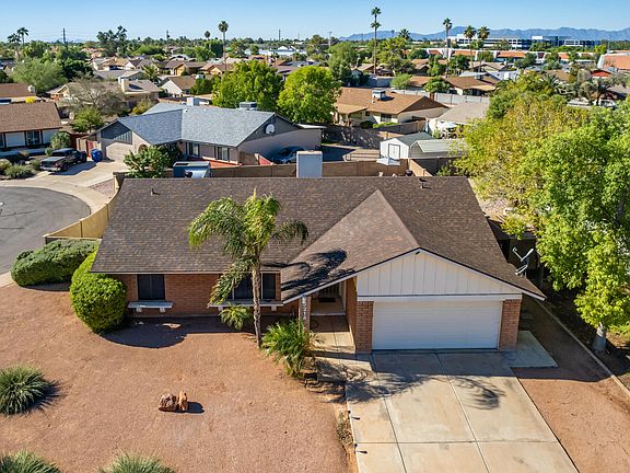 Motivated Seller! All reasonable offers will be considered. NO HOA! 9043sqft corner lot, situated in a cul-de-sac residence showcasing a 2-car garage and RV gate! Inside, you'll discover an impressive living area offering soothing palette, wood-look flooring w/neutral tile in high-traffic areas, built-in shelves, and vaulted ceilings. The remarkable eat-in kitchen boasts a plethora of cherry wood cabinets, granite counters, recessed lighting, back patio access, and a delightful brick fireplace. Double doors open to the main bedroom featuring soft carpet in all the right places, a private bathroom, and a walk-in closet. Gather your loved ones in the wonderful backyard with a covered patio, green grass, and a sparkling blue pool! Brand new 30 year roof installed in October 2022.