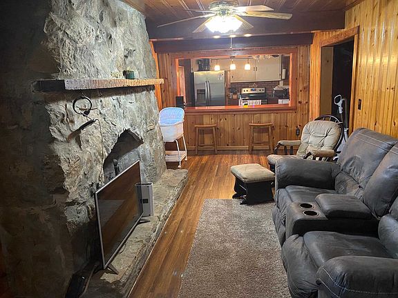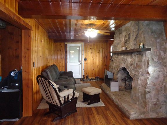 Relax and enjoy this Cozy Country Cabin sitting on 2.2 acres with a 20% ownership in pond. Bird watching and wildlife to enjoy. This 2 Bedrooms and one bath. There have been many improvements including a new Roof, replacement windows, septic tank lines and tank pumped 2020, windows, retaining wall, chimney tuck pointed and sealed and new header and posts on the front porch. The Great room has a Stone wood burning fireplace to warm you on those cold winter days. Breakfast bar has a custom oak counter top. to the Kitchen is perfect for visits with family and friends. Appliances include a Refrigerator and Range. Large sun room. The 1 car Garage. Beautiful Lot has a place for a Pole Barn(up to 30X40)