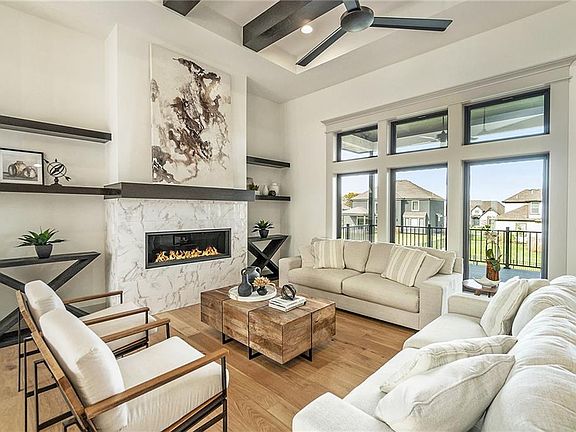 Impressive home built by Steel Creek situated on a homesite that allows fencing. Steel Creek along with their designer have creatively designed a fresh modern front featuring hip roofing with 2' soffits & black on black Anderson windows that will stand out from the white exterior planned for this home. Inside you're greeted with 8' doors, a fabulous kitchen that includes a double walk-in pantry w/a custom desk, an island & custom cabinetry. Great room has wall of windows and a sleek floor to ceiling fireplace. The covered deck is accessible from the dining area as well as the master bedroom. Master suite has all the bells & whistles including a large walk-in closet that leads to the laundry room, free-standing tub, custom shower & dual vanities. Downstairs they created a cozy rec room with wall bar, two bedrooms w/Jack & Jill bathroom, additional powder bath, & an amazing amount of storage - you could finish out some of the space if you desire a workout room. On the main level there is another bedroom with bathroom that is great for friends & family or would be an excellent office. Staley Farms is the destination spot for hundreds of families looking for quality of life in both recreation and education. From the golf course, zero entry pool, indoor basketball court, exercise rooms, tennis & volleyball courts, and of course Staley High, we have it all!