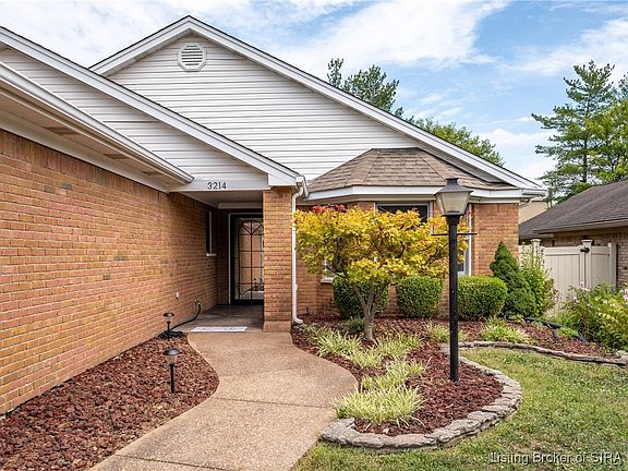 New Albany's hidden Gem. Experience the ease of living in an all brick patio home with this split bedroom floor plan that features over 2100 sq ft, a large primary suite with new carpet, walk-in shower, double vanity, walk-in closet, additional nice size bedroom with new carpet and a bay window. Spacious eat in kitchen has hard wood floors, many cabinets, a large island breakfast bar, dishwasher, stove, oven, microwave, laundry and pantry. Once entering the welcoming foyer you immediately see the hardwood floors throughout the great room, with fireplace accompanied by bookcases, skylights and new ceiling fan. This room is large enough to also accommodate a dining table, game area or reading space, as well as additional office space/dining room. Lets not forget the 25 x 10 all seasons room with brick floor, bay window, new ceiling fan and door leading to the new concrete side patio. 2 car garage, Close to shopping, dining, and Bridges. Don't wait, lets work together and make this house your home. Owner is a Licensed Real Estate Agent. Sq ft & rm sz approx.