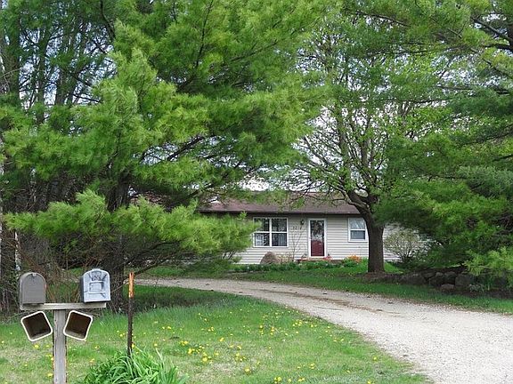 Lovely ranch on 1 1/4 acres fenced. Hardwood floors throughout. Stainless steel appliances w/new dishwasher. New washer/dryer. Bar in basement to entertain in. Wood burning stove in 30’x50’ pole barn with electricity, cement floor. Peace and quiet in a beautiful country setting, yet close to town.