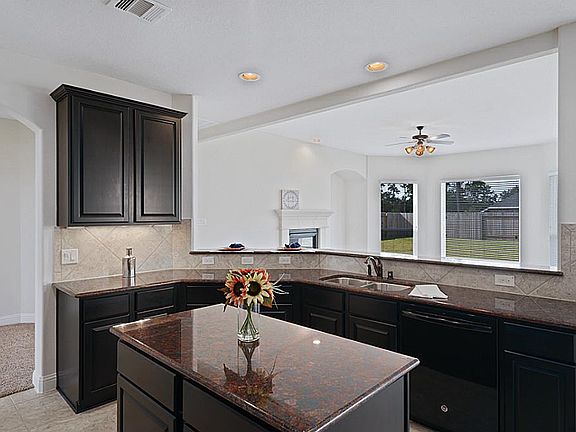 NO FLOODING. New Anglia ''Hastings'' home ready for the Holidays. Open floor plan 4/3/1 with vaulted ceilings. Fireplace. Chef's kitchen with island and granite counters. Formal dining. Master suite with dual vanities, separate tub, walk-in shower and huge closet. Three bedrooms and a large game room up. Blinds. Covered patio w/fan and huge yard. Community pool, playground and walking trails. Minutes to I-45 and the Woodlands. Priced to sell FAST! Call today for a personal tour.
