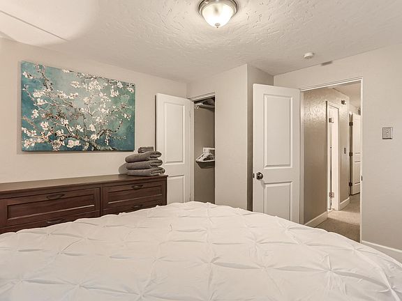 Both bedrooms come furnished with queen beds, dresser storage and double rack closets. The full bathroom upstairs offers an updated step in shower with luxurious rain shower head The living room is inviting and leads directly into the open dining area with table seating for four, a breakfast bar for two and fully stocked kitchen. The backyard is perfect for your pup as well as enjoying Colorado's weather in all seasons.