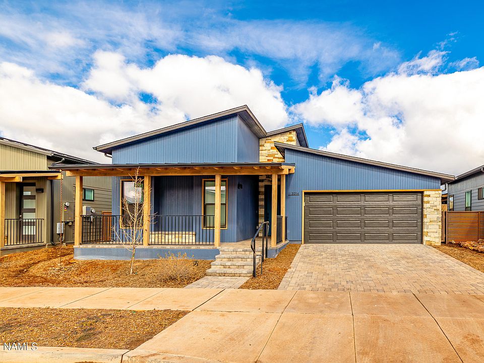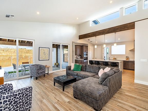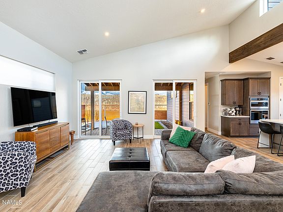 Gorgeous, almost new single level, turnkey home in Adora at Timber Sky! Built in 2021 and only gently used, this modern 3 bedroom, 3 bath home allows you to live beautifully, relax comfortably, entertain with ease and invest wisely. It's a successful STR. The signature greatroom with soaring ceilings, high windows and endless natural light is the heart of your home - and a beloved feature of the Mandalay floorplan. The upgraded, modern kitchen with energy efficient appliances is open to the greatroom and perfect for cooking and gathering. Two ensuite bedrooms create privacy for family and guests, and the third bedroom can be a bedroom or an office. This home is fully furnished! Just bring your toothbrush. It has extensive backyard landscaping with artificial turf, perfect for family and guests. It includes fridge, washer, dryer, window coverings, furnishings, linens and kitchen items. Owned solar panels and Mandalay's signature ION system create fabulous energy effiiciency. Set against the backdrop of our majestic mountains, and only minutes from downtown Flagstaff, the trails and our best amenities, this single level home is a rare Flagstaff find. Short term rentals are permitted! Inspection has been completed and this home is in tip-top excellent condition. A few personal items do not convey. Mandalay homes have sold out in Timber Sky! Don't miss this opportunity to own a Mandalay floorplan in Timber Sky!