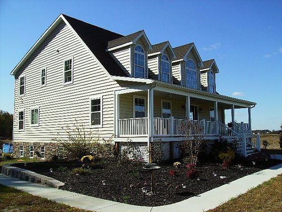 Live in a peaceful setting on one acre and play on the beaches in less than fifteen minutes in this delightful and spacious home just west of Bethany Beach. Look at al this home has to offer: 5 bedrooms, 3 ½ baths, living room, family room, dining room, huge eat-in kitchen, full walk-out basement, large master suite with attached den and gorgeous bathroom plus front porch and deck! This fairly new home, built in 2006, has everything anyone could want in a home with space galore, room for family and friends, rooms for privacy and rooms for games as well as a large outdoor area for gardening and play. See what this lovely cape cod style house offers with 2900 square feet on the first and second floors and a 1600 square feet partially finished basement with a separate walkout entrance!!! Enter the home from the wide porch into the two story foyer with lots of architectural details that make it feel cozy. The cozy living room with gas fireplace is separated from the foyer by columns and next to it is the dinging room, also with columns. In this area of the house, reclaimed hardwood is used on the floors to give a feeling of age in a new home. Walking through to the spacious kitchen with windows and large sliders to the deck is a delight to the senses with the beautiful paint color and architectural details. The kitchen is definitely made for a chef with double wall ovens, two dishwashers, and a fantastic dual fuel range with five burners and a professional hood. There is sweeping bar seating and an eat-in area to augment the dining room. Sixteen inch tile covers the floors in this area that is full of light and beauty.