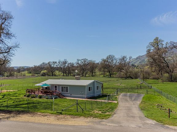 No need to look any further, this beautiful 5 acre ranch is all you've been searching for. This 3/2 mobile home recently received a new roof, solar, and a cooler equipped with a water softener. The tankless water heater keeps things ready and hot at all times. The energy efficient dual pane windows make summers a breeze to keep the house cool, and the 2 ton A/C unit makes for a chilly place to relax on a hot summer day. The house was recently leveled on the permanent foundation and passed inspection with flying colors. Got water??no worries here! The spring fed pond is a fool proof way to see where the water table is. If your looking for a safe place to let your animals graze on green grassy pastures, this is the perfect place. The entire perimeter of this ranch is equipped with a newer no climb fence, which you won't find on most ranches, there was no expense spared here. The back corner of this flat, fully usable property has a seasonal creek and a handful of Valley Oaks.