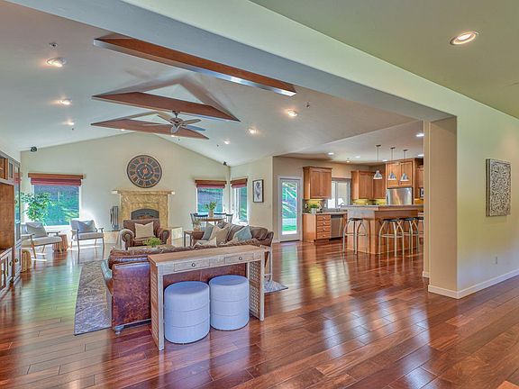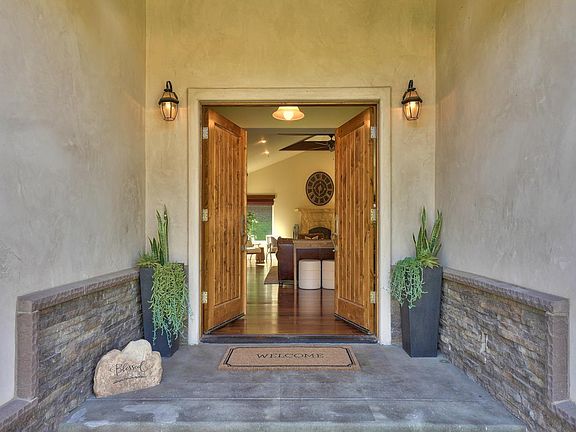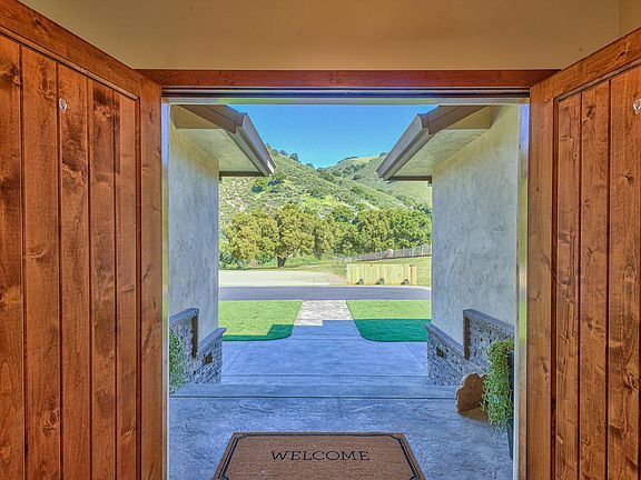 Come and experience all that the canyon has to offer with green grassy hills, a gently flowing creek and promises of long summer days. This magnificent property offers a custom-built home on over 40 sprawling acres, making it the perfect oasis for those seeking a peaceful lifestyle. Walking through the front door, you'll be greeted by vaulted ceilings, with wood beam accents and a beautiful wood burning fireplace. The open concept layout provides the perfect blend of comfort and convenience. The horse facilities include a 3-stall pole barn, pastures, and a large sand filled riding arena. The vast 40-acres of gently sloped hillside provide endless possibilities for outdoor activities, from hiking and biking to horse riding and exploring. From the top of the hill, you are greeted with stunning views and even a peek of the ocean on a clear day. If you're looking for a serene escape from the hustle and bustle of city life, then this magical ranch is the perfect place to call home.