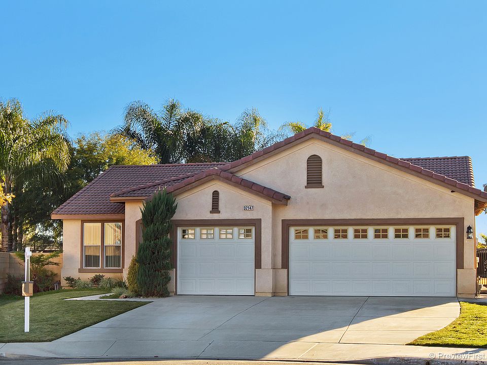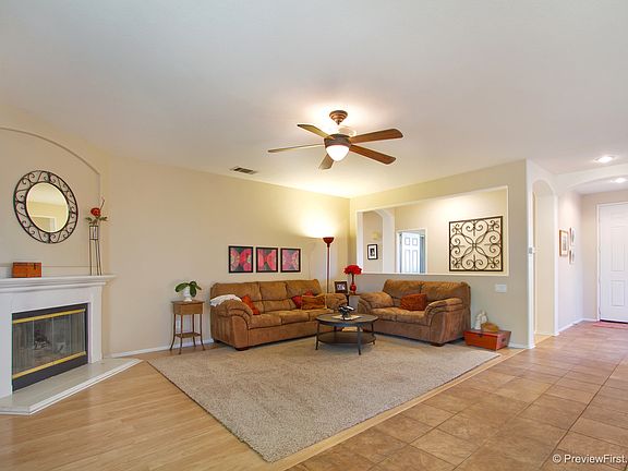 Beautiful cul-de-sac home w/large private yard & wonderful outdoor living, including a spa & covered area w/ceiling fans & lighting, big enough to entertain 30-40 people!The palm lined lot also has no homes directly behind you, has fire pit, & lots of space for your pets or dog run. Kitchen is oversized w/Corian counter tops, white GE range/oven & microwave & Kenmore dishwasher. Kitchen & eat-in area plus entry & traffic areas boast attractive tile flooring, & the best feature is the great room opens to the kitchen, w/built-in cabinetry & a gas log fireplace, wood laminate flooring & ceiling fan. In addition to the 3 spacious bedrooms, this wildly popular plan has an extra room at the entry that can be used as an office or will make a great guest or 4th bedroom w/room for a small closet & doors to be added. Please note the 9 foot ceilings throughout! MBR is very spacious & has a sliding glass door to access the patio & spa! In your MBR bath, you will enjoy a separate shower & soaking tub, dual sinks & plenty of storage in your extra long vanity & a large walk-in closet. The 3-CAR garage is currently set up to double as the owner's man cave! LOW taxes & NO HOA! Please come & view soon-the neighbor's property sold in 5 days & this one should go quick also!