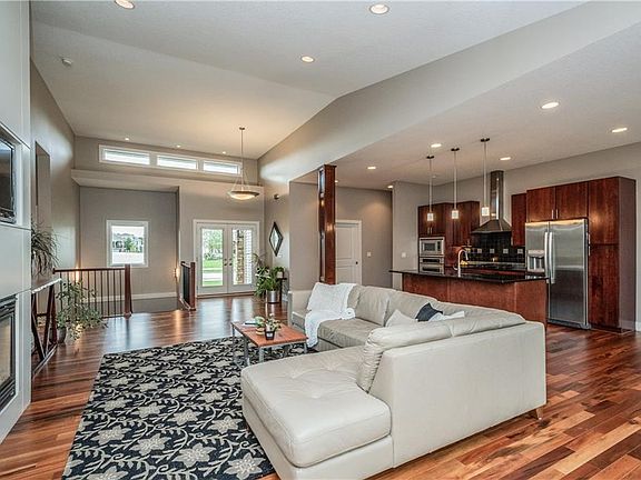 Contemporary walkout ranch nestled in prime location within well established neighborhood. Enter through executive double front doors to an incredible open floor plan boasting vaulted ceilings, hardwood floors, and floor to ceiling windows. 3,500 sqft of finished living space includes spacious kitchen, w/ granite counter tops and high end SS appliances, 1st floor laundry, 4 bedrooms (+1 large nonconforming currently utilized as a fitness room), huge walk-in closets throughout, enormous lower level family room w/ surround sound, and so much more. Whether you love to entertain or simply wind down & relax, the outdoor space couldn't be more perfect (& private!) and features an elongated deck and patio-- both extending the full length of home! Urbandale address with Waukee schools... Don't miss out on this one!