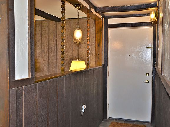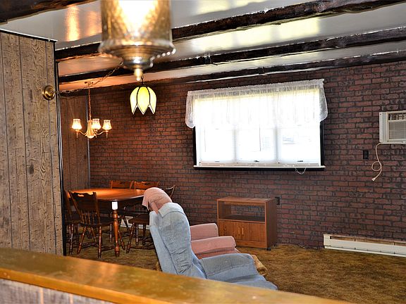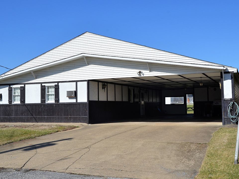 Enjoy one floor living in this rustic 3-bedroom Ranch that boasts an extensive area for covered parking or outdoor entertaining. Slate flooring in the entry. The living room is open to the dining area which features a picture window and large wooden ceiling beams. Kitchen is equipped and contains a counter space that is open to the dining area. In the back of the house, you have a low maintenance level yard and a patio.